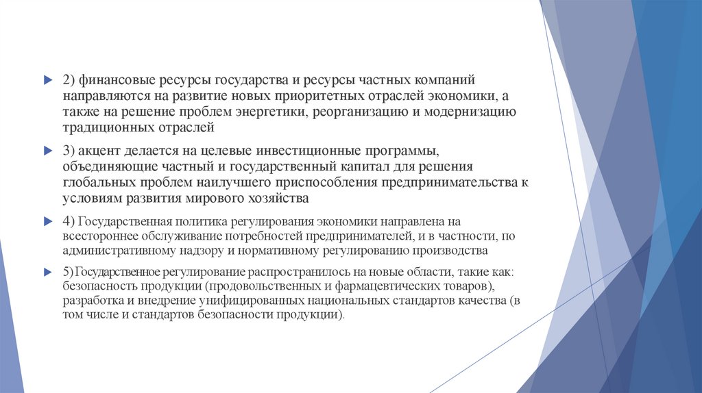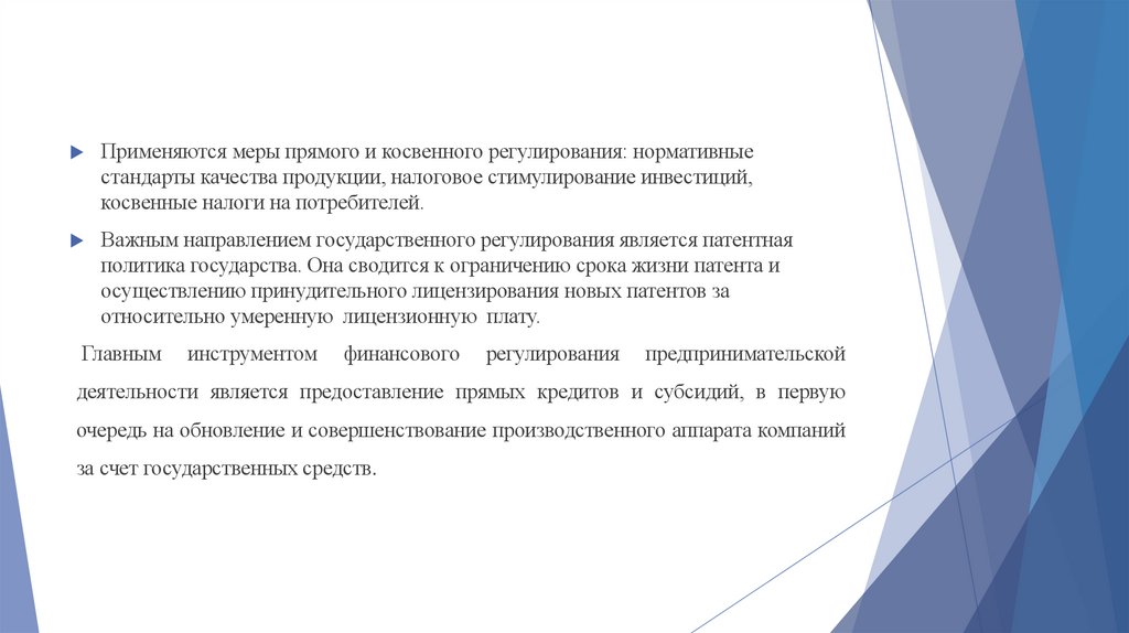 ослабление прямых форм вмешательства и бюрократического контроля за