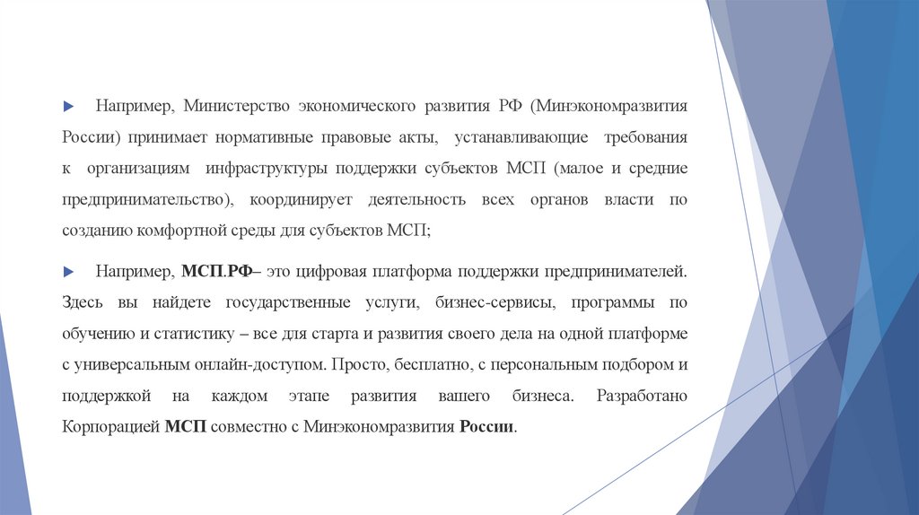 Например, МСП.РФ– это цифровая платформа поддержки предпринимателей.