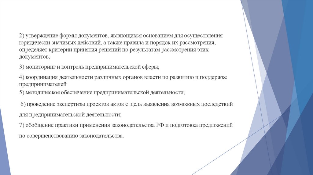 1) издание нормативных правовых актов по регулированию предпринимательской