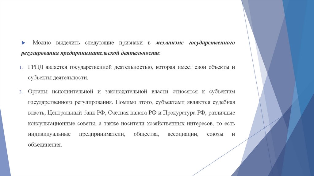 Можно выделить следующие признаки в механизме государственногорегулирования предпринимательской деятельности: