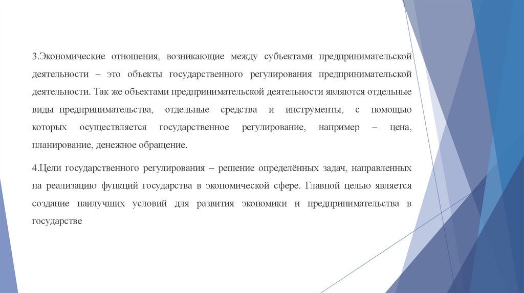 3.Экономические отношения, возникающие между субъектами предпринимательскойдеятельности – это объекты государственного регулирования предпринимательской