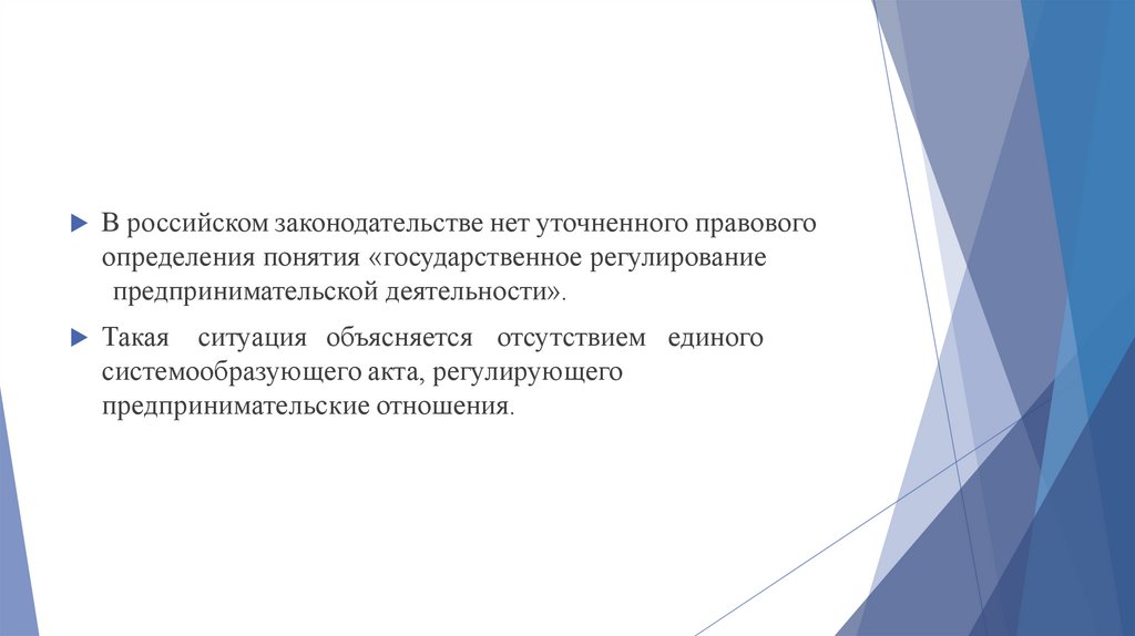 В российском законодательстве нет уточненного правовогоопределения понятия «государственное регулирование