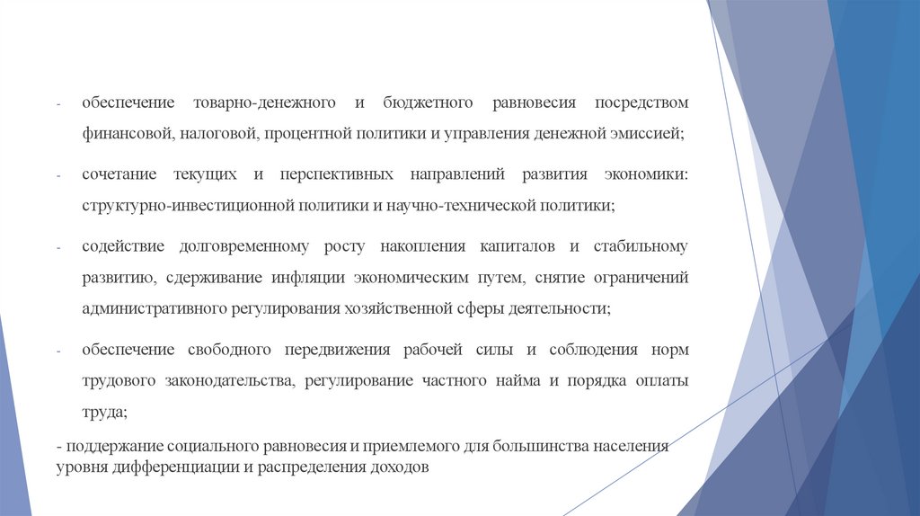 развитию, сдерживание инфляции экономическим путем, снятие ограничений