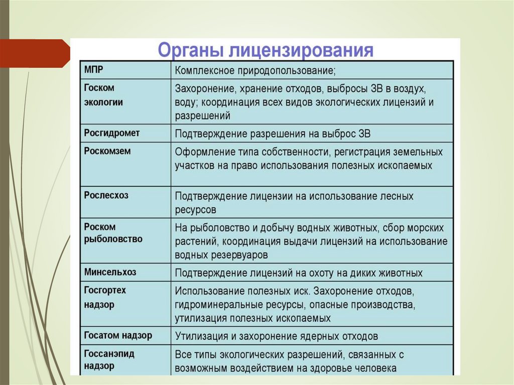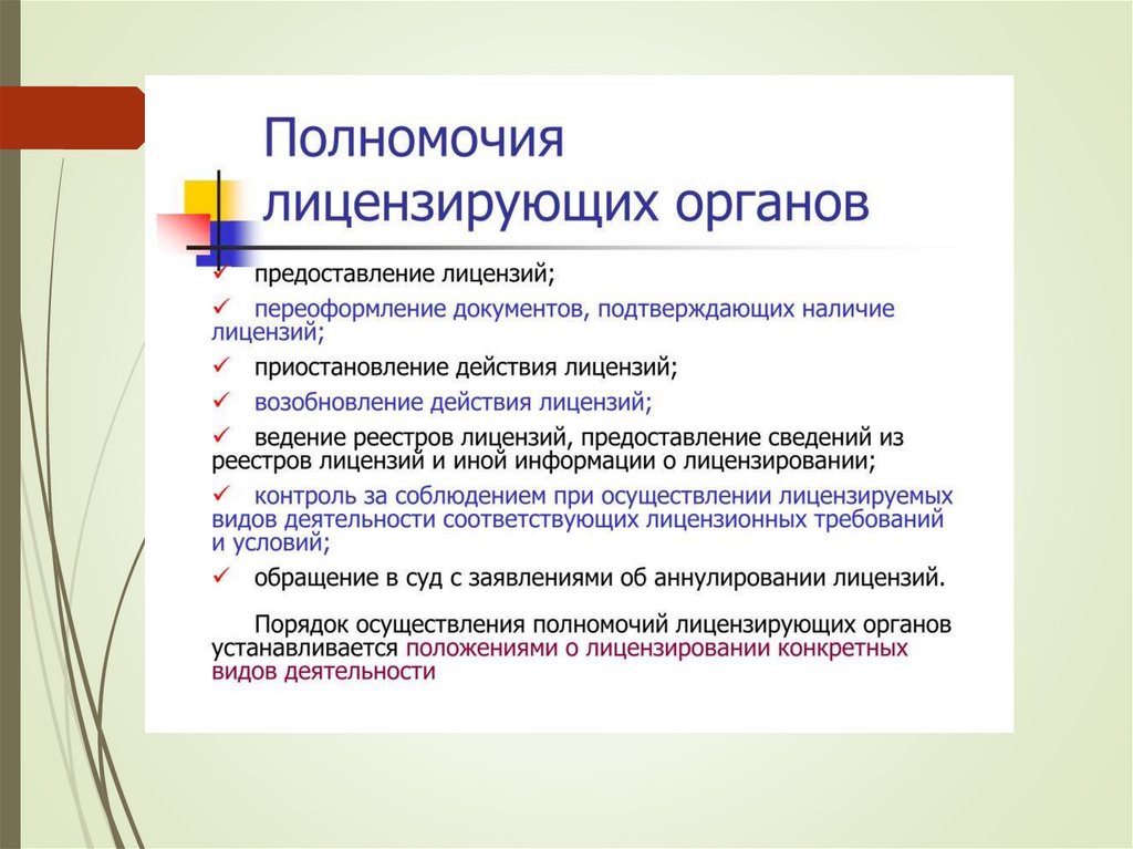 лицензирующих органов и др.