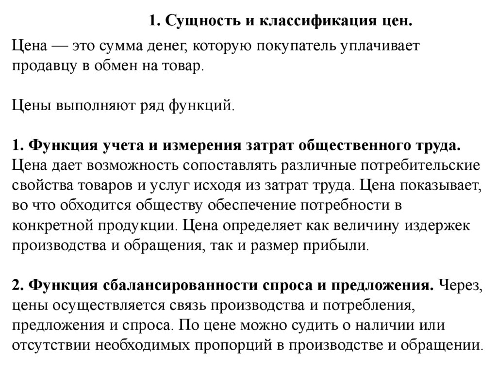 1. Сущность и классификация цен.Цена — это сумма денег, которую покупатель уплачивает