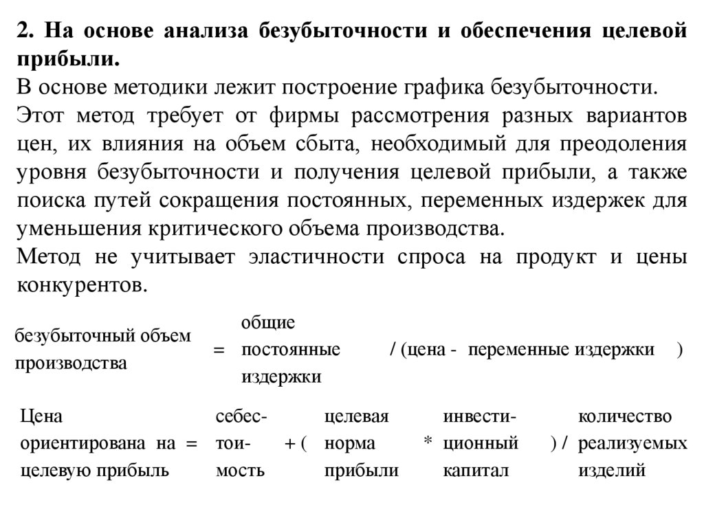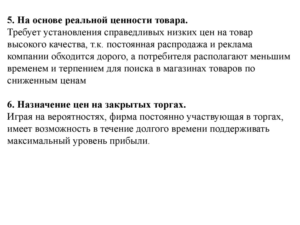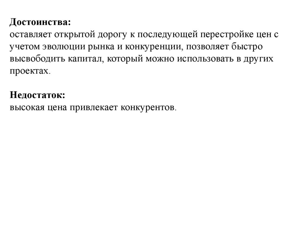Достоинства:оставляет открытой дорогу к последующей перестройке цен с