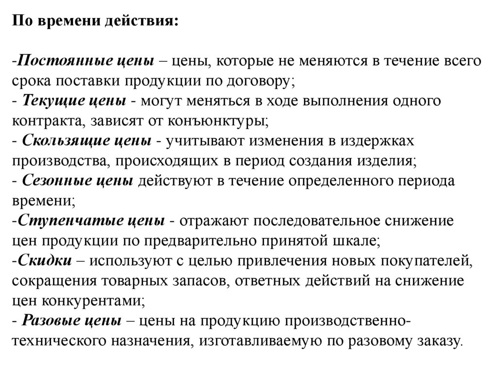 По времени действия:-Постоянные цены – цены, которые не меняются в течение всего