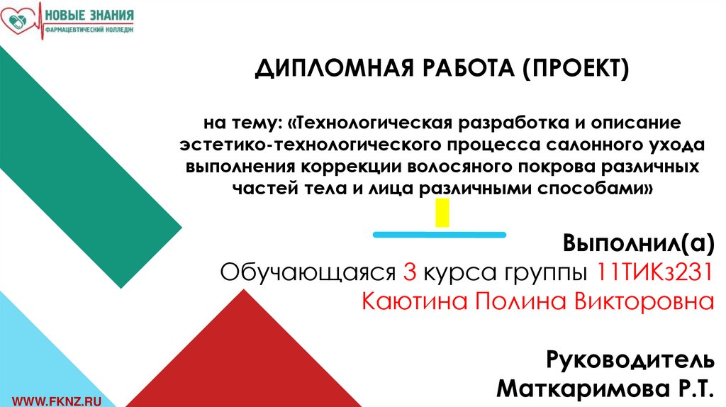 Цель - технологическая разработка и описание комплексного эстетикотехнологического процесса салонного ухода по коррекции волосяного