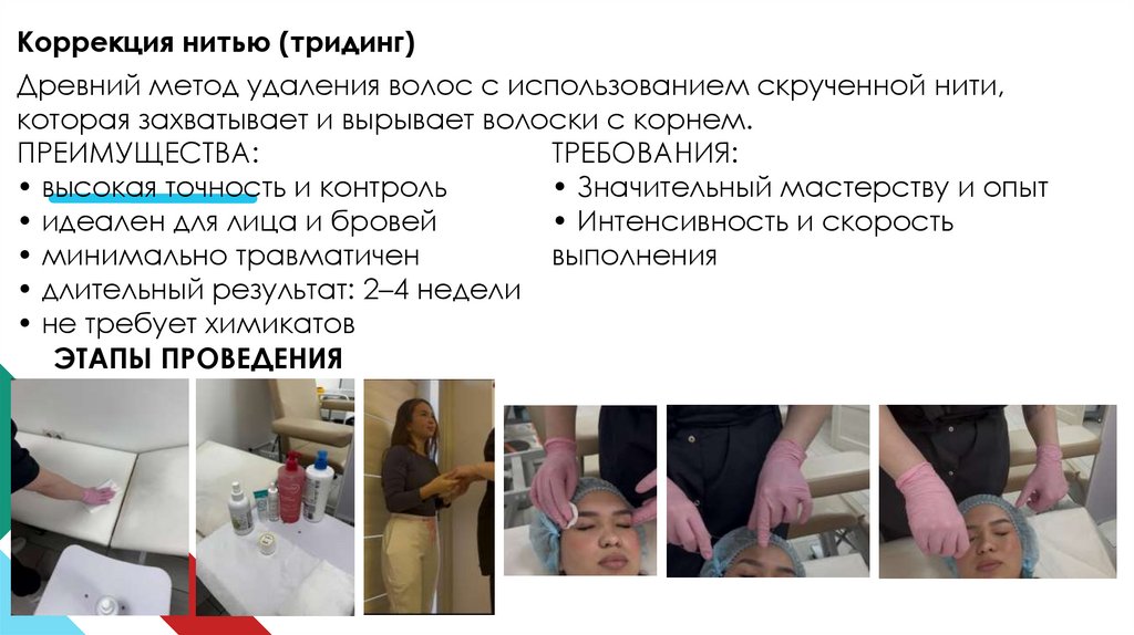 Коррекция нитью (тридинг)Древний метод удаления волос с использованием скрученной нити,