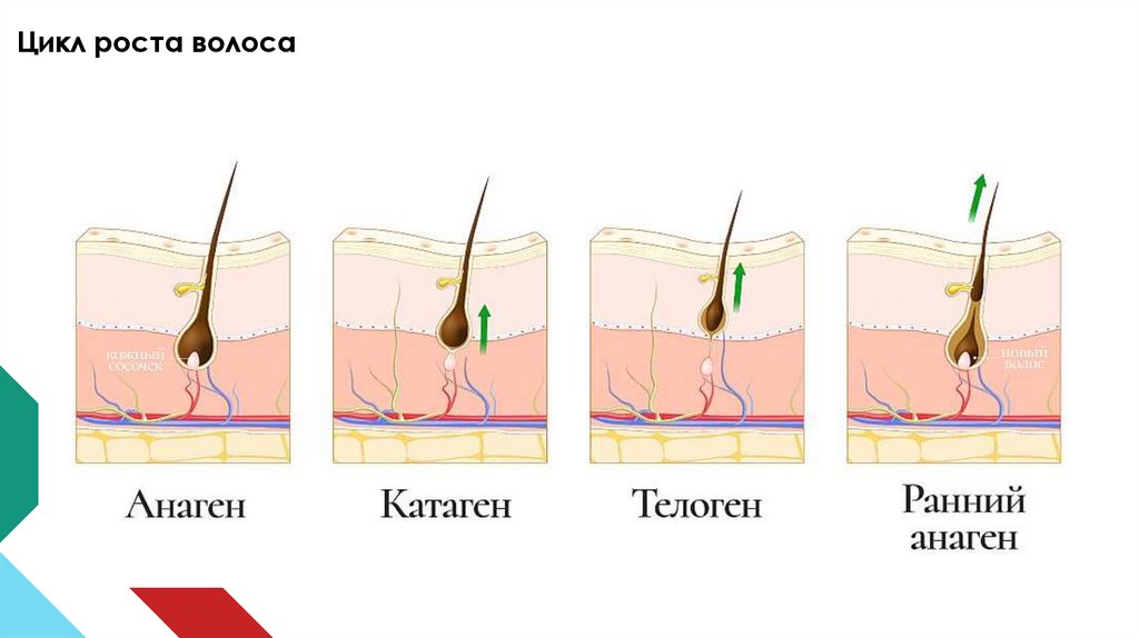 • Волосяной фолликул – источник роста волоса в глубине дермы