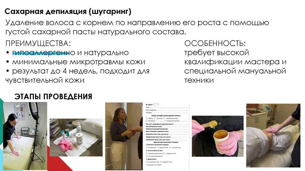 коррекции волос (ваксинг, шугаринг, химическая депиляция, тридинг)