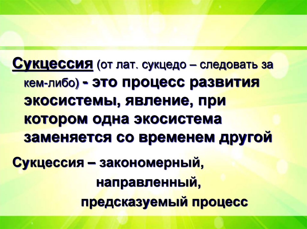 Сукцессия (от лат. сукцедо – следовать закем-либо) - это процесс развития