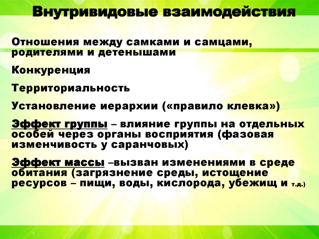 ресурсов – пищи, воды, кислорода, убежищ и т.д.)