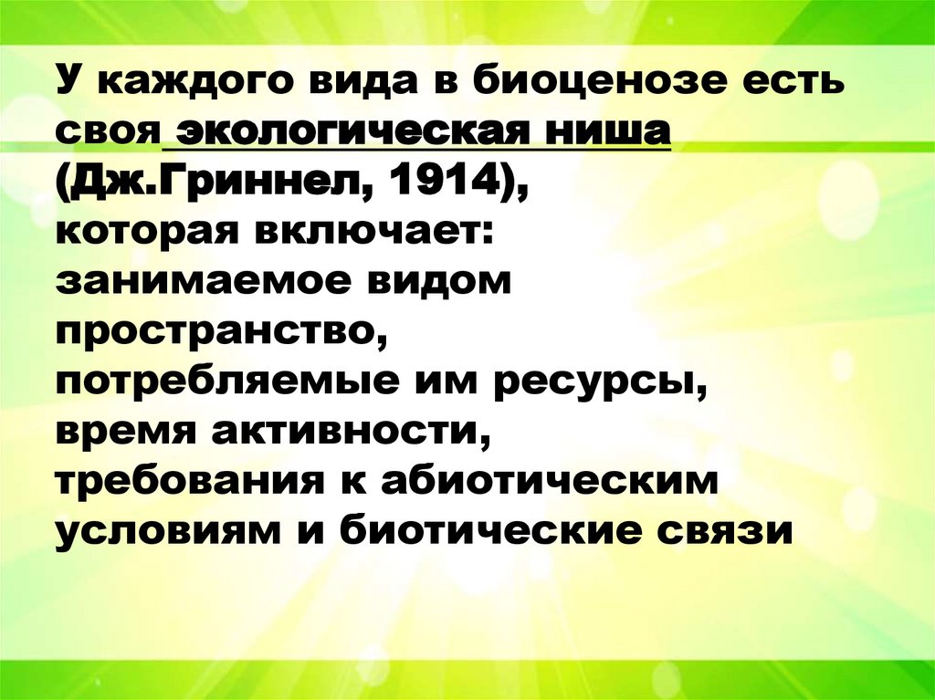 У каждого вида в биоценозе естьсвоя экологическая ниша