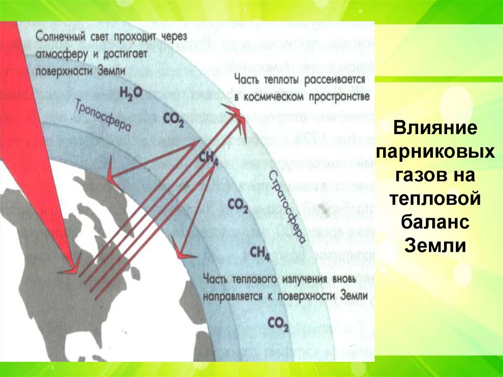 8. Парниковый эффект – повышение средней температуры на планете в результате чрезмерного попадания в атмосферу ряда газов,