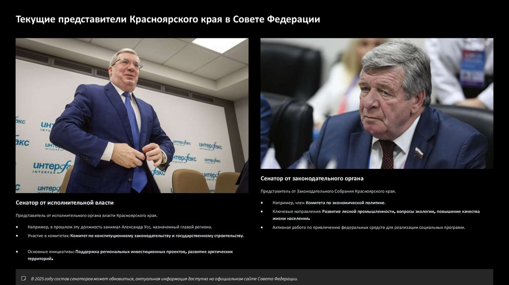 Текущие представители Красноярского края в Совете ФедерацииСенатор от законодательного органа