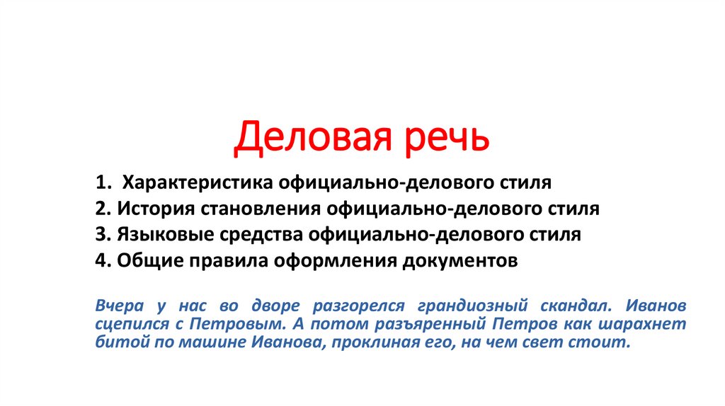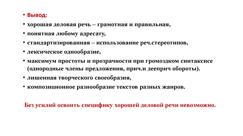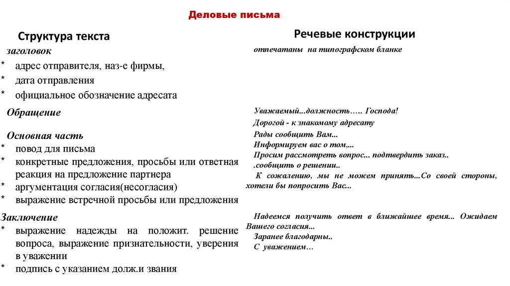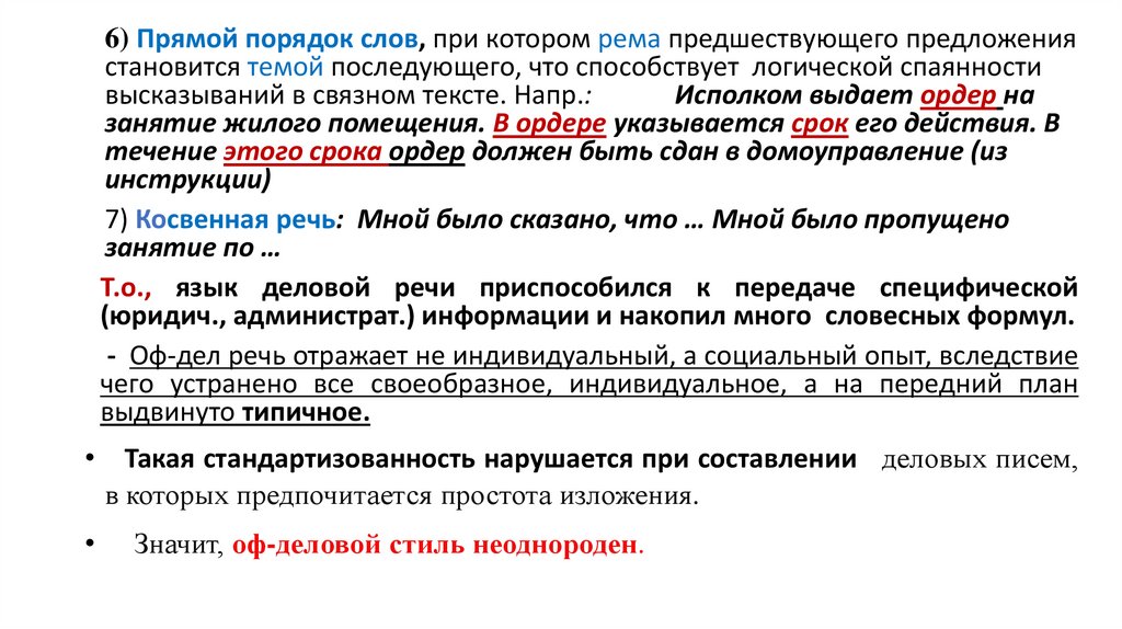 ЦЕЛЬ: точно и обобщенно передать инф-цию в офиц-дел обстановке.