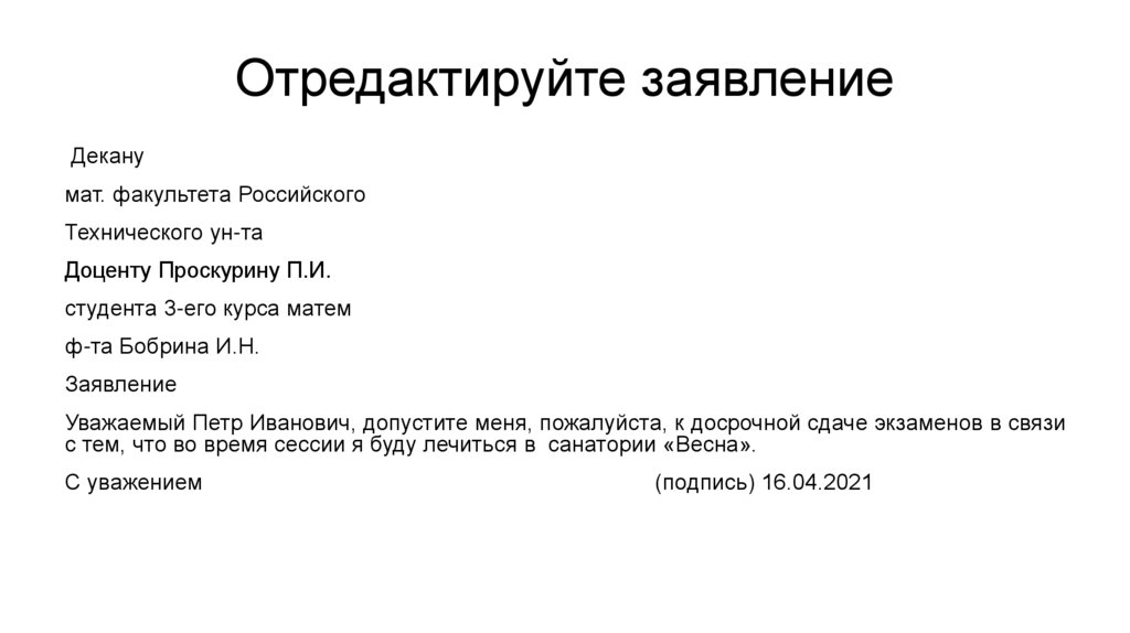 Уважаемый Иван Иванович, убедительно прошу Вас принять меня на