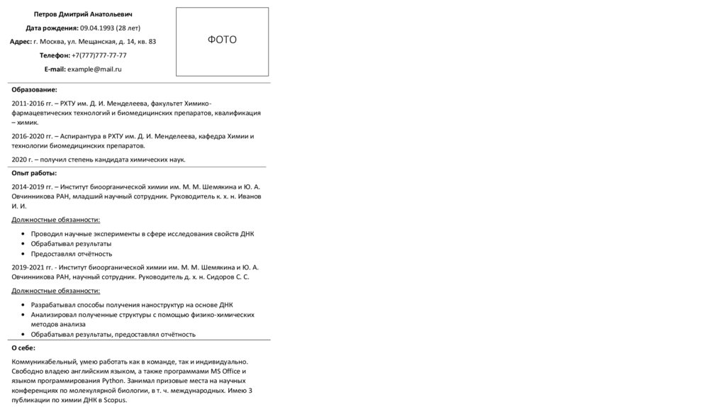 Человек – организация (заявление, автобиография, резюме, объяснит.записка)