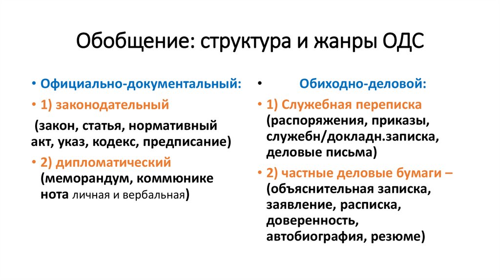 Жанры: конституция, закон, статья, нормативный акт, указ,устав