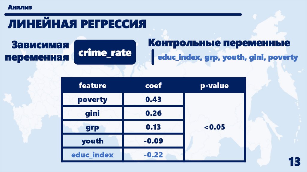 АнализЛИНЕЙНАЯ РЕГРЕССИЯ