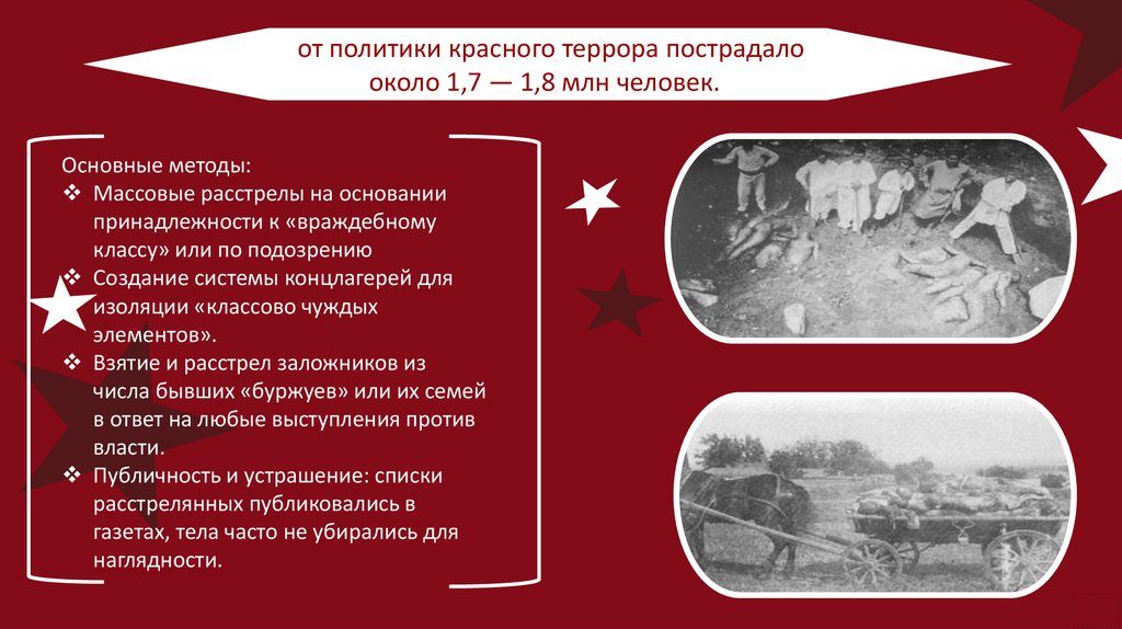 от политики красного террора пострадалооколо 1,7 — 1,8 млн человек.