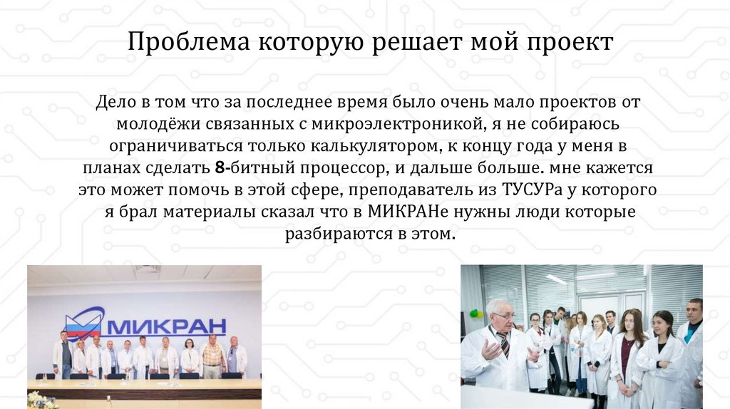 молодёжи связанных с микроэлектроникой, я не собираюсь