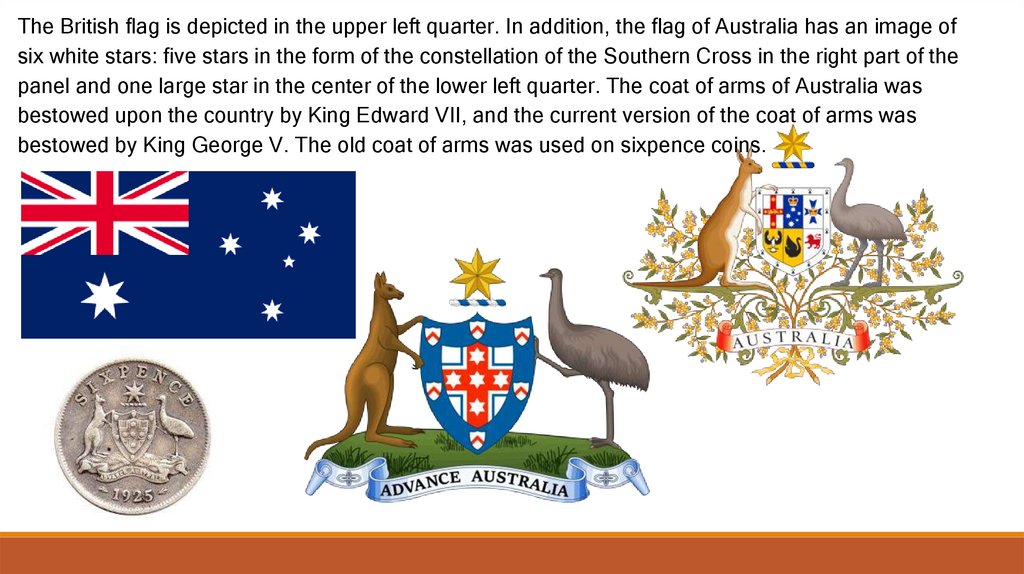 panel and one large star in the center of the lower left quarter. The coat of arms of Australia was