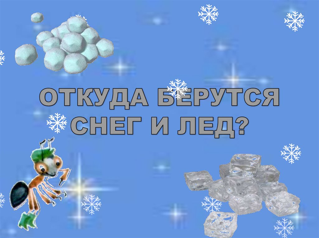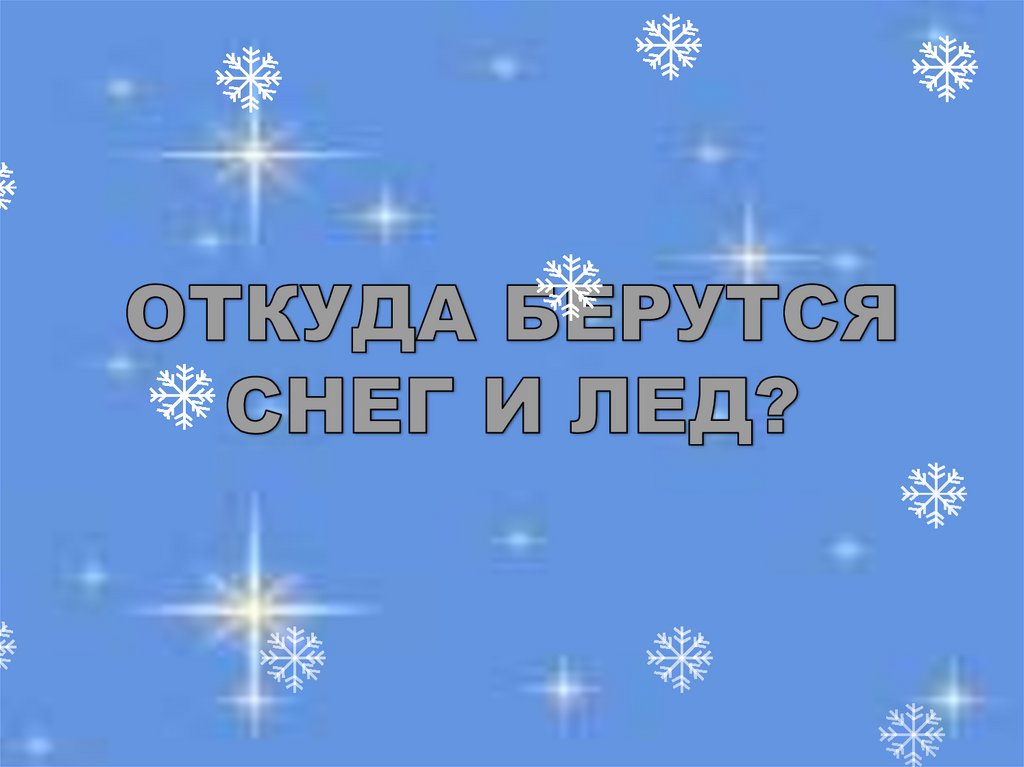 льдинки-кристаллики. Это еще не те снежинки, какиепадают на землю, они еще очень малы. Но шестиугольный