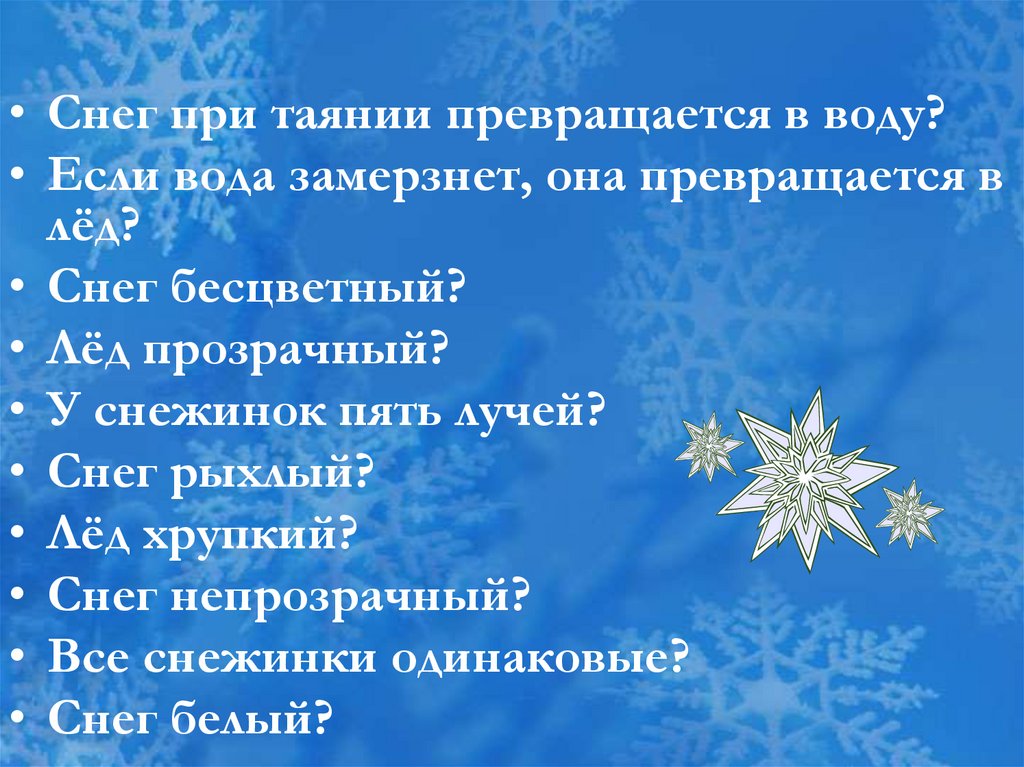• Снег при таянии превращается в воду?• Если вода замерзнет, она превращается в