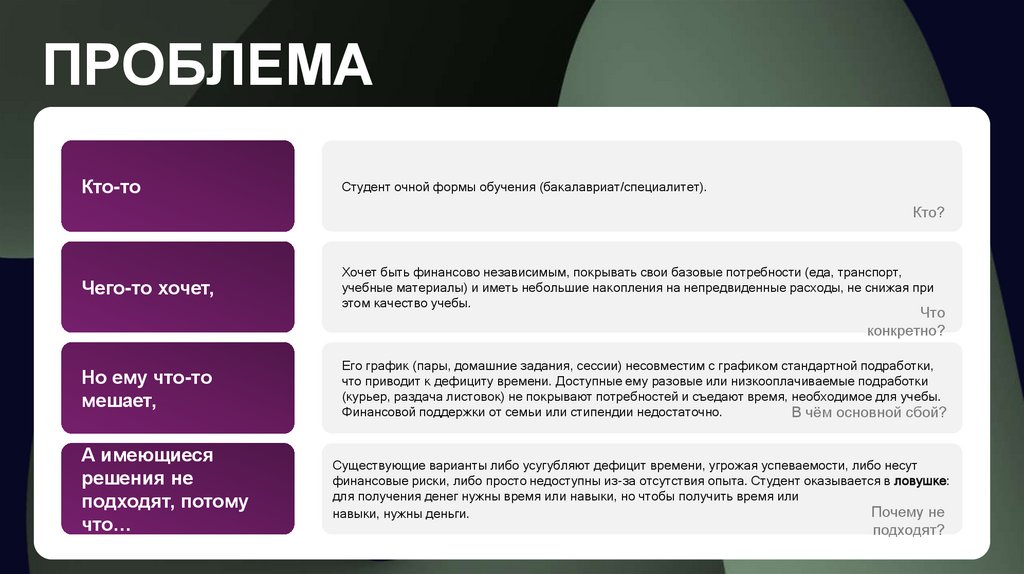 Его график (пары, домашние задания, сессии) несовместим с графиком стандартной подработки, что приводит к