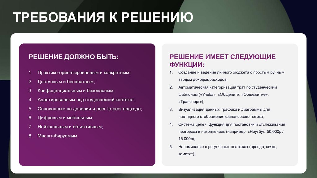 ТРЕБОВАНИЯ К РЕШЕНИЮРЕШЕНИЕ ДОЛЖНО БЫТЬ: