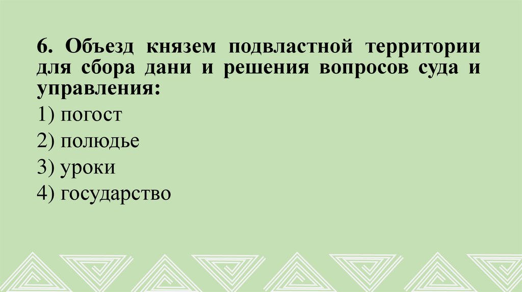 6. Объезд князем подвластной территориидля сбора дани и решения вопросов суда и