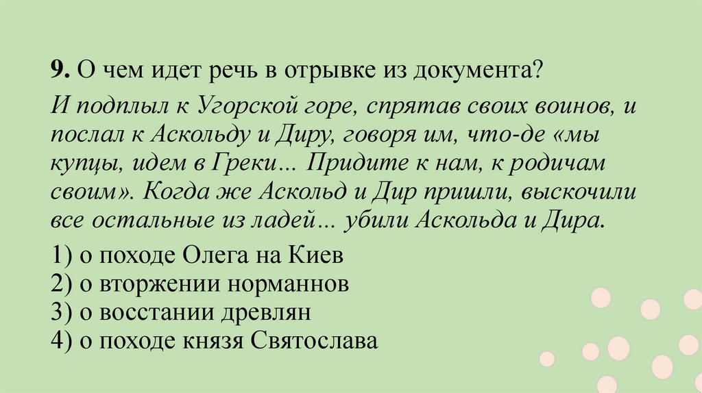 9. О чем идет речь в отрывке из документа?И подплыл к Угорской горе, спрятав своих воинов, и