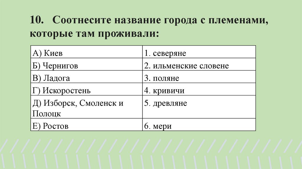 10.А-3; Б-1; В-2; Г-5; Д-4; Е-6