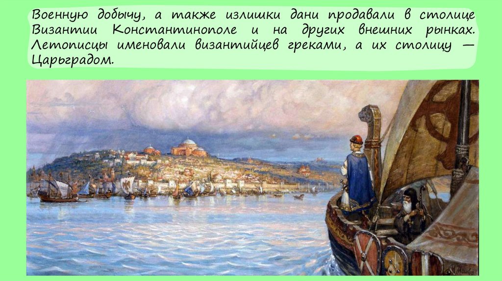 Военную добычу, а также излишки дани продавали в столицеВизантии Константинополе и на других внешних рынках.