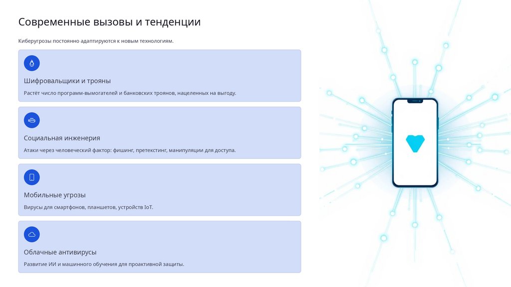Современные вызовы и тенденцииКиберугрозы постоянно адаптируются к новым технологиям.