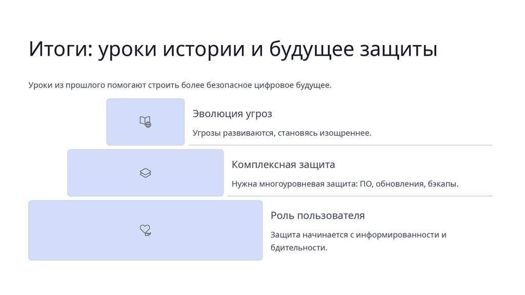 Итоги: уроки истории и будущее защитыУроки из прошлого помогают строить более безопасное цифровое будущее.
