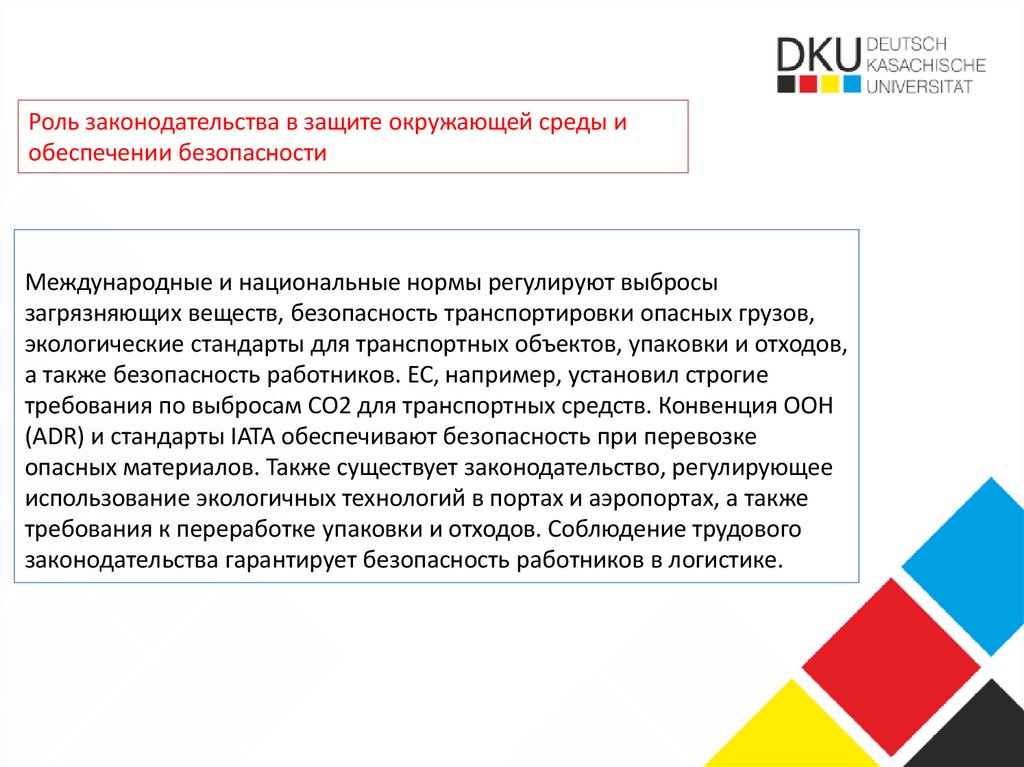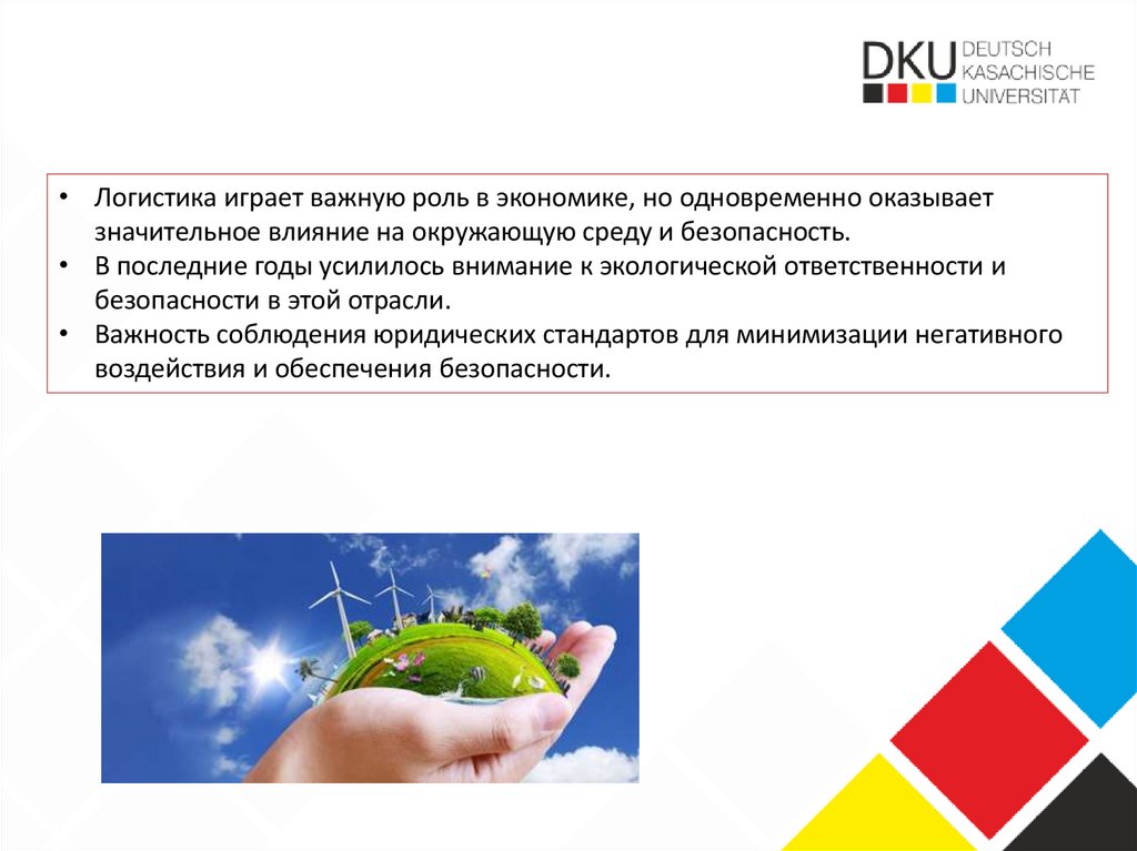 • Логистика играет важную роль в экономике, но одновременно оказываетзначительное влияние на окружающую среду и безопасность.