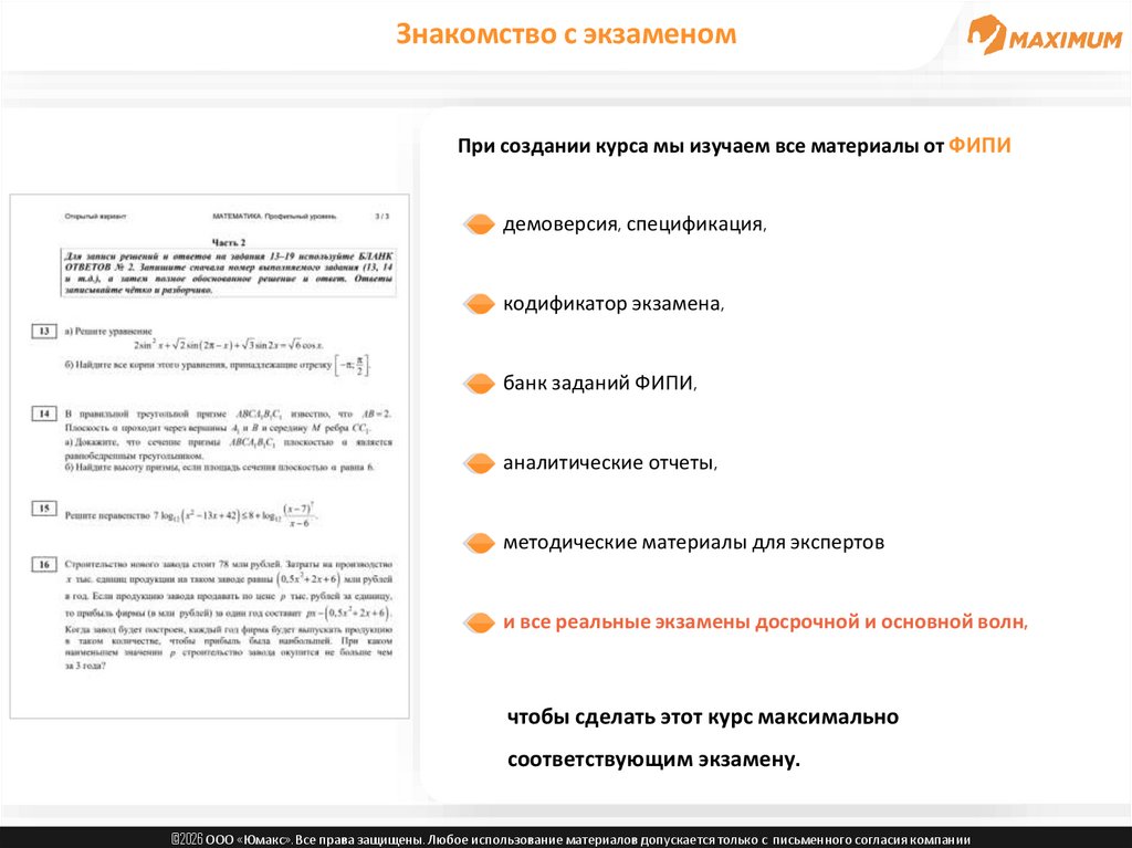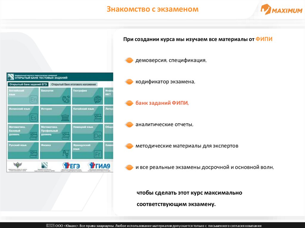 Знакомство с экзаменомПри создании курса мы изучаем все материалы от ФИПИ
