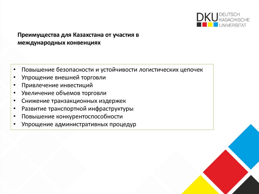 Преимущества для Казахстана от участия вмеждународных конвенциях
