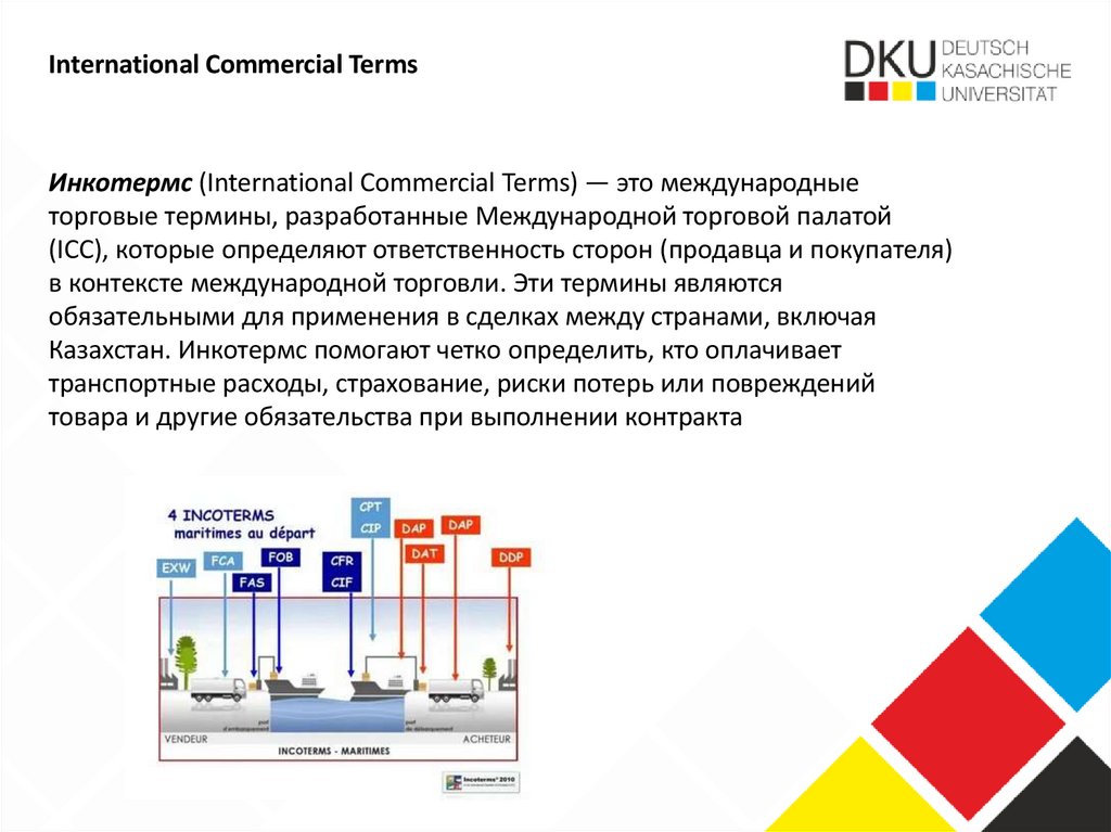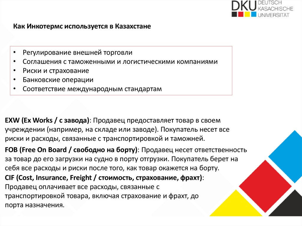 Как Инкотермс используется в КазахстанеРегулирование внешней торговли