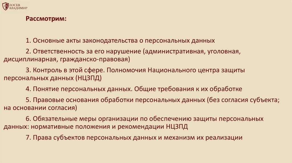 Рассмотрим:1. Основные акты законодательства о персональных данных