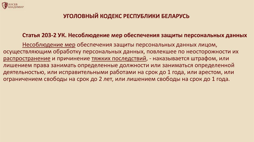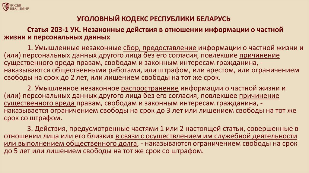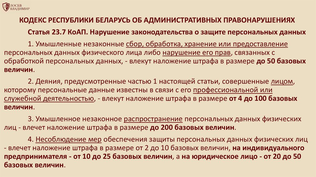 КОДЕКС РЕСПУБЛИКИ БЕЛАРУСЬ ОБ АДМИНИСТРАТИВНЫХ ПРАВОНАРУШЕНИЯХСтатья 23.7 КоАП. Нарушение законодательства о защите персональных данных
