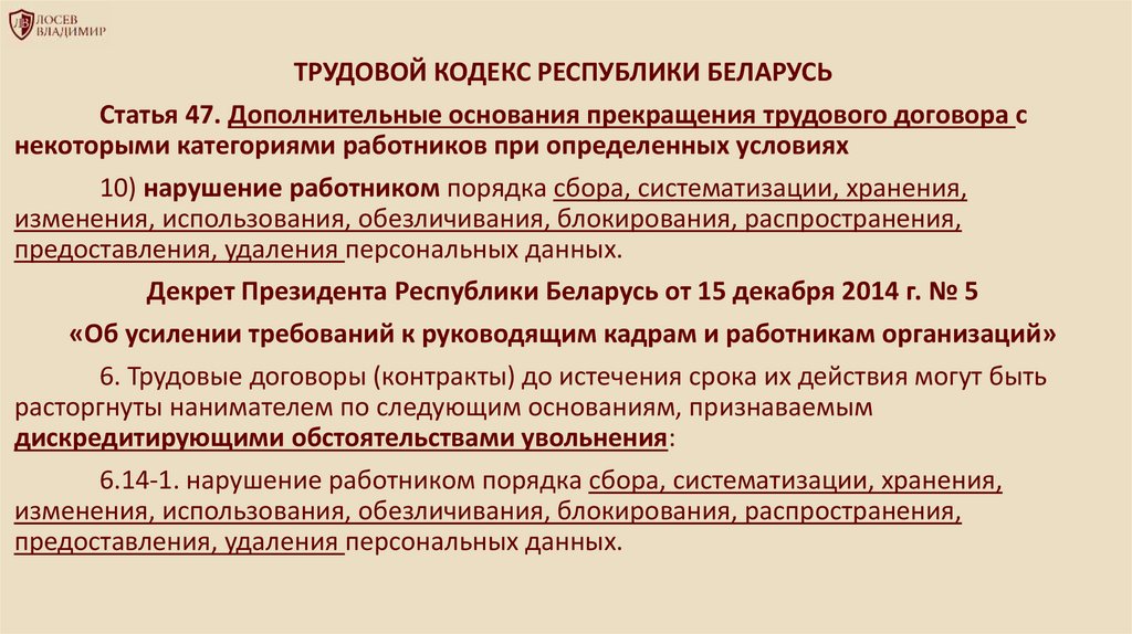 Трудовой кодекс Республики Беларусь (пункт 10 части 1 статьи 47)