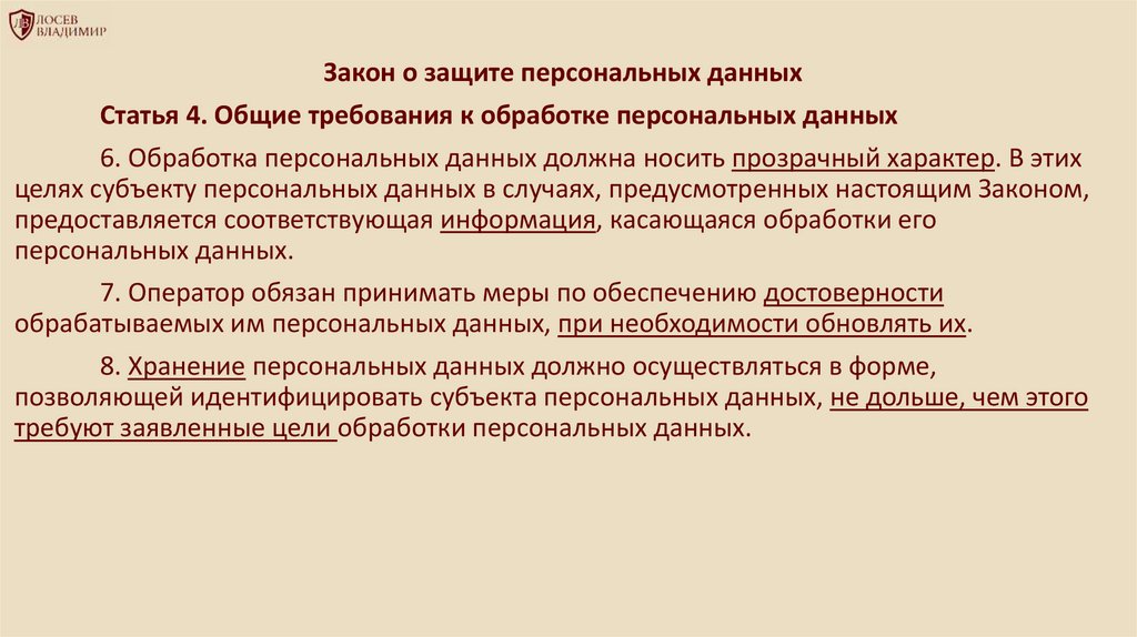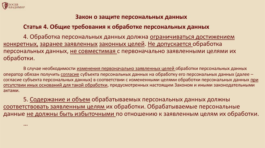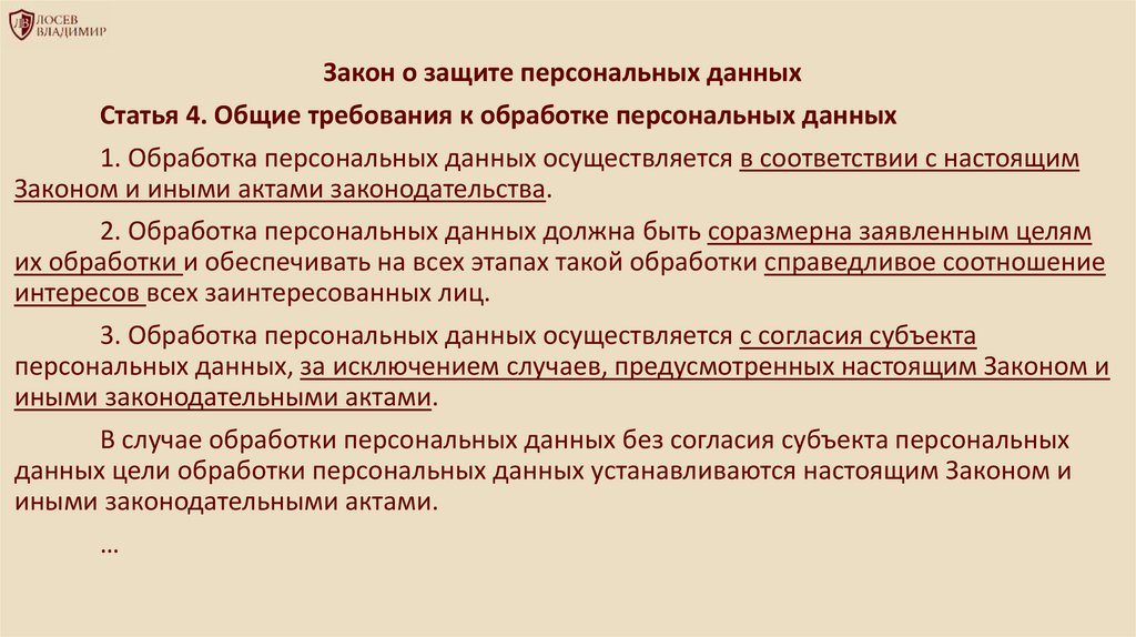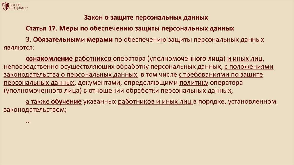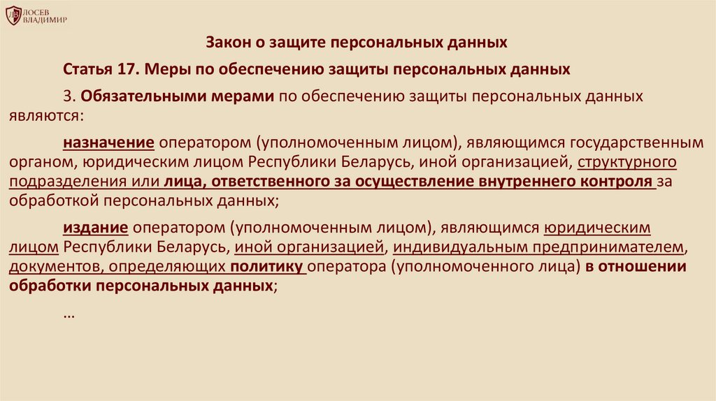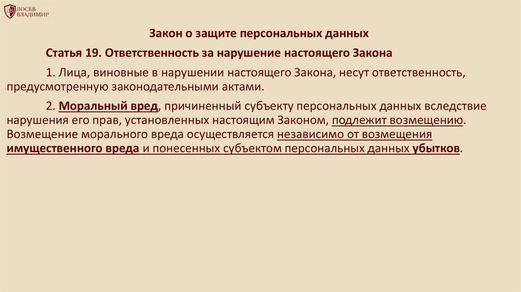 Закон о защите персональных данных (пункт 2 статьи 19)