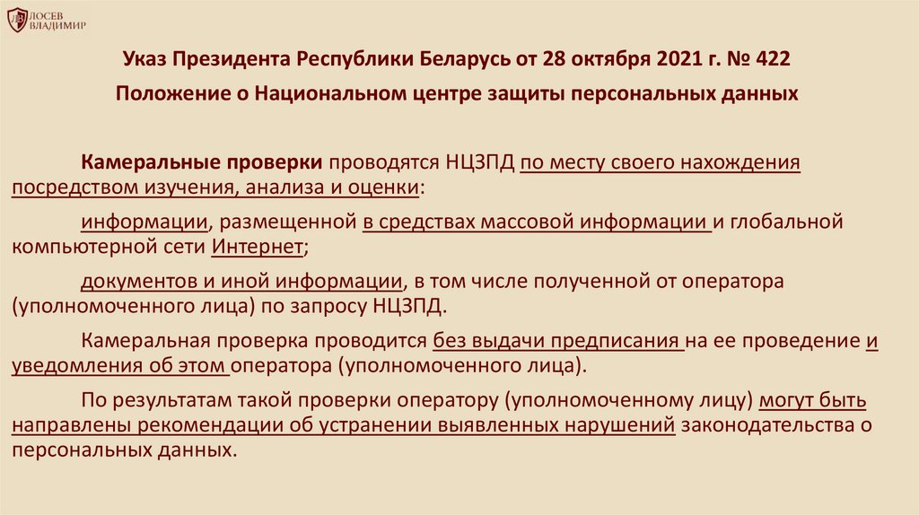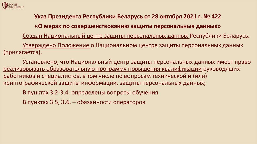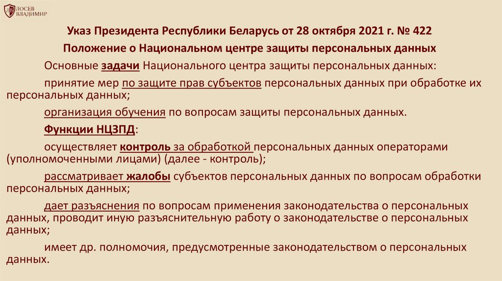совершенствованию защиты персональных данных» (с Положением о Национальном