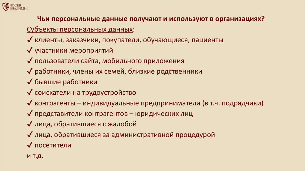 субъектов (клиента, покупателя, соискателя на трудоустройство, работника, подрядчика,