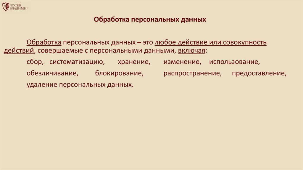 оператора (организации, индивидуального предпринимателя), связанных с обработкой