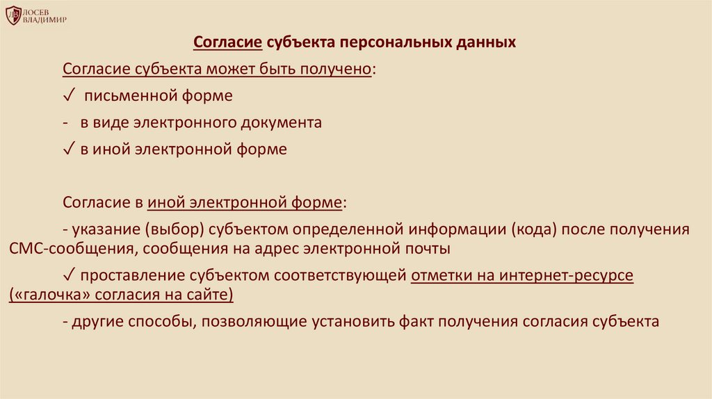 перед получением согласия (в письменном виде и электронном – на сайте перед